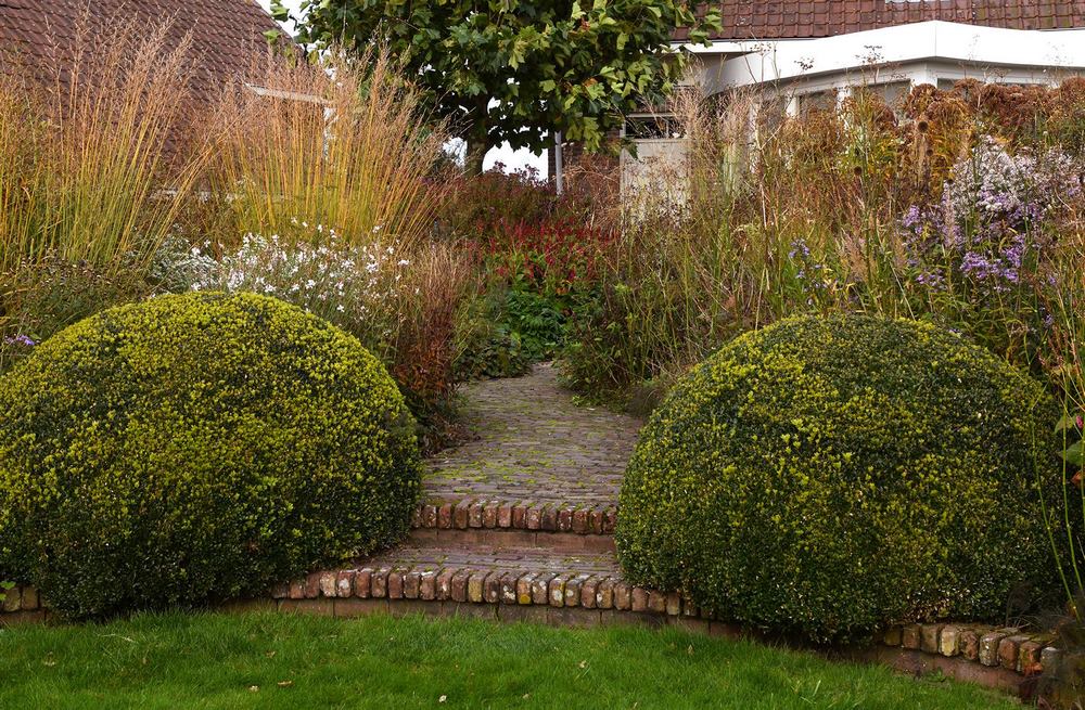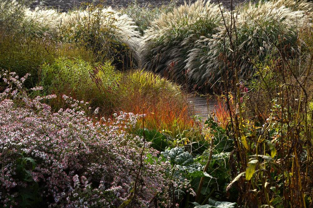 El vivero, junto con el jardín, tiene poco menos de media hectárea de superficie. En el corazón del vivero se disponen las plantas en función de su color y forma. El jardín privado, que empezó como una afición, es ahora un jardín maduro y, además de ser el lugar donde testean el comportamiento de las plantas, sirve de exhibición y muestra para los clientes, ya que está abierto a los visitantes en el mismo horario del vivero. Antes o después de sus compras, pueden buscar inspiración en las borduras de estilo naturalista de ese jardín experimental, plantadas exclusivamente con plantas vivaces y, mayoritariamente, gramíneas ornamentales, que en estos días de otoño ofrecen una espectacular exhibición de belleza, como muestran las fotografías, cortesía de Joachim Hegmann, que ha realizado durante su última visita hace un par de semanas.