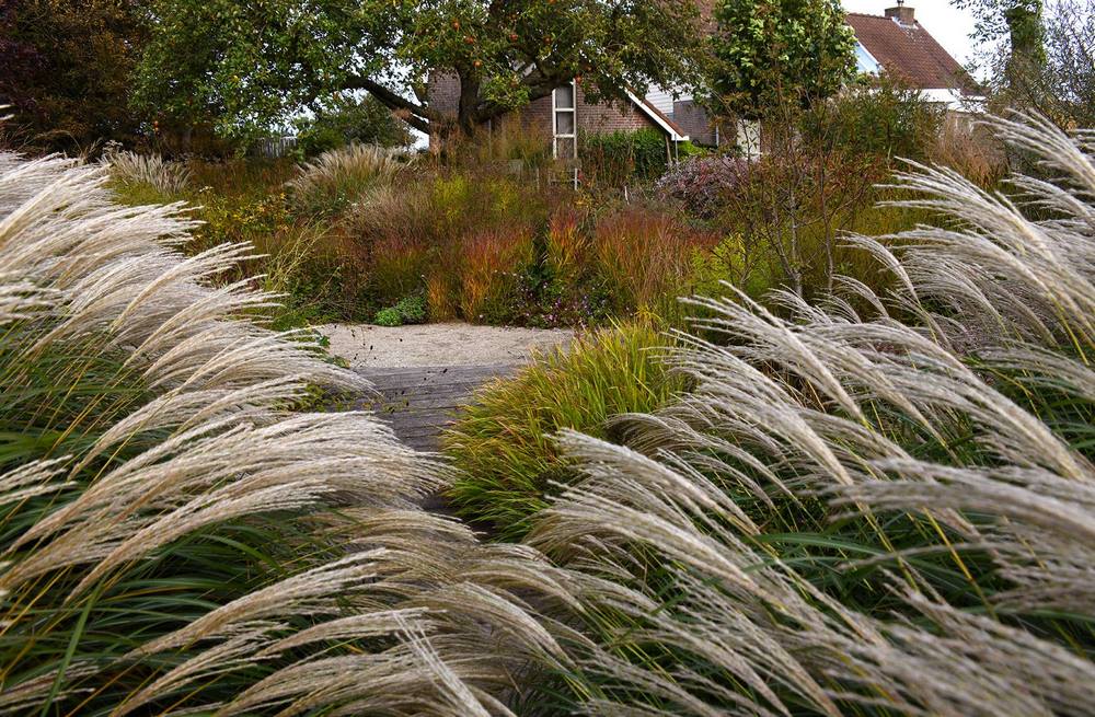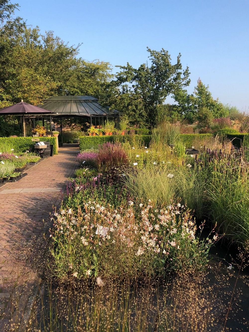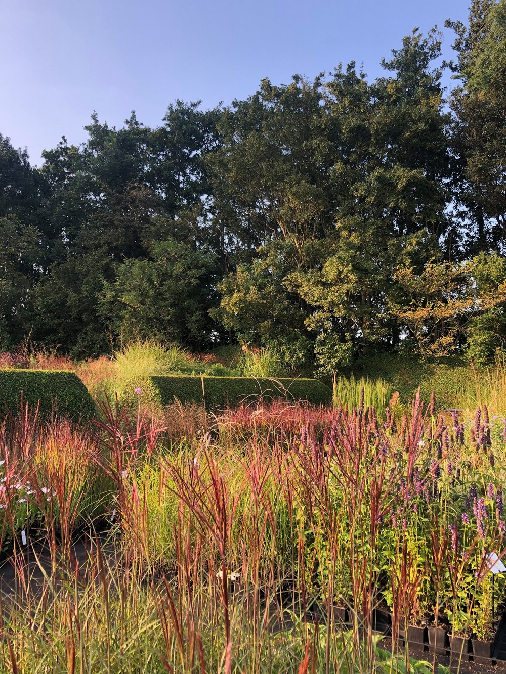 Un pequeño vivero, casi rodeado por árboles, setos de ligustro y otra vegetación protectora, que además cuenta con un jardín privado de acceso libre, donde sus propietarios crean inspiradoras combinaciones de gramíneas ornamentales y plantas vivaces en una amplia variedad de borduras de herbáceas perennes, que sirven de muestra a los clientes que acuden a comprar plantas. Si lo hacen en otoño, no pasarán desapercibidos el movimiento y estructura de los miscanthus y sus espectaculares inflorescencias en plumas.