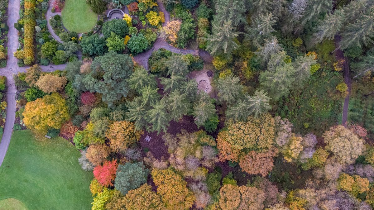 | Vista aérea colores otoñales en RHS Garden Rosemoor / © RHS / Julian Weigal |