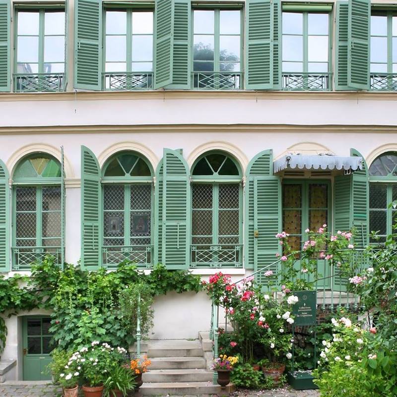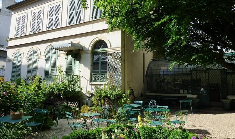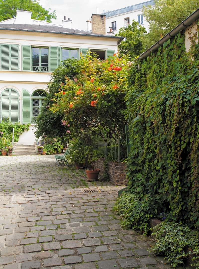 Un portal abierto sobre un patio pavimentado. Al final del callejón, una casa de artista transformada en museo. A la derecha, un magnífico jardín plantado con árboles donde se aloja el salón de té de Le Musée de la Vie romantique (Museo de la Vida romántica). Un lugar que forma parte de la historia del arte y la literatura. Un rincón tranquilo y romántico en la ciudad de París.