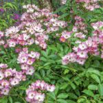 A la floración de las peonías le suceden la de otras especies de herbáceas perennes, como los astilbes híbridos (Astilbe × arendsii ‘Erika’ y Astilbe × hybrida ‘Gloria Purpurea’), que a principios de julio crean una hermosa alfombra rosa alrededor del histórico reloj de sol situado en el centro del Peony Garden.