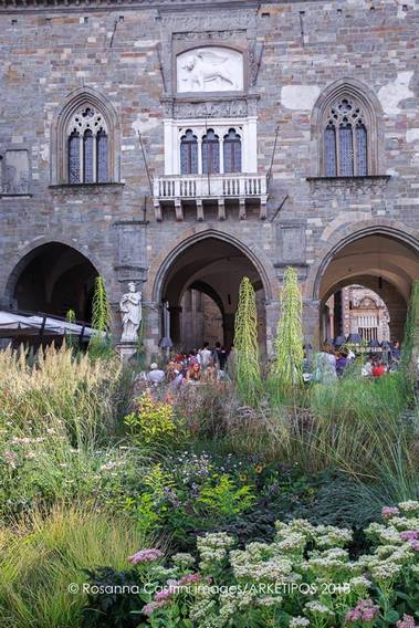 Pero ahora vamos a centrarnos en Bérgamo, en su bellísima Piazza Vecchia y en la instalación realizada por Piet Oudolf siguiendo el enfoque del evento, “Plant Landscape”, que es el mismo enfoque de su trabajo, dicho sea de paso. Para hacernos una idea del aspecto que tenía ese jardín-instalación que invade estos días la emblemática plaza, quería mostraros las imágenes realizadas por la fotógrafa y paisajista (o viceversa) Rosanna Castrini, a quien, como siempre, felicito por su trabajo y agradezco inmensamente su cortesía.