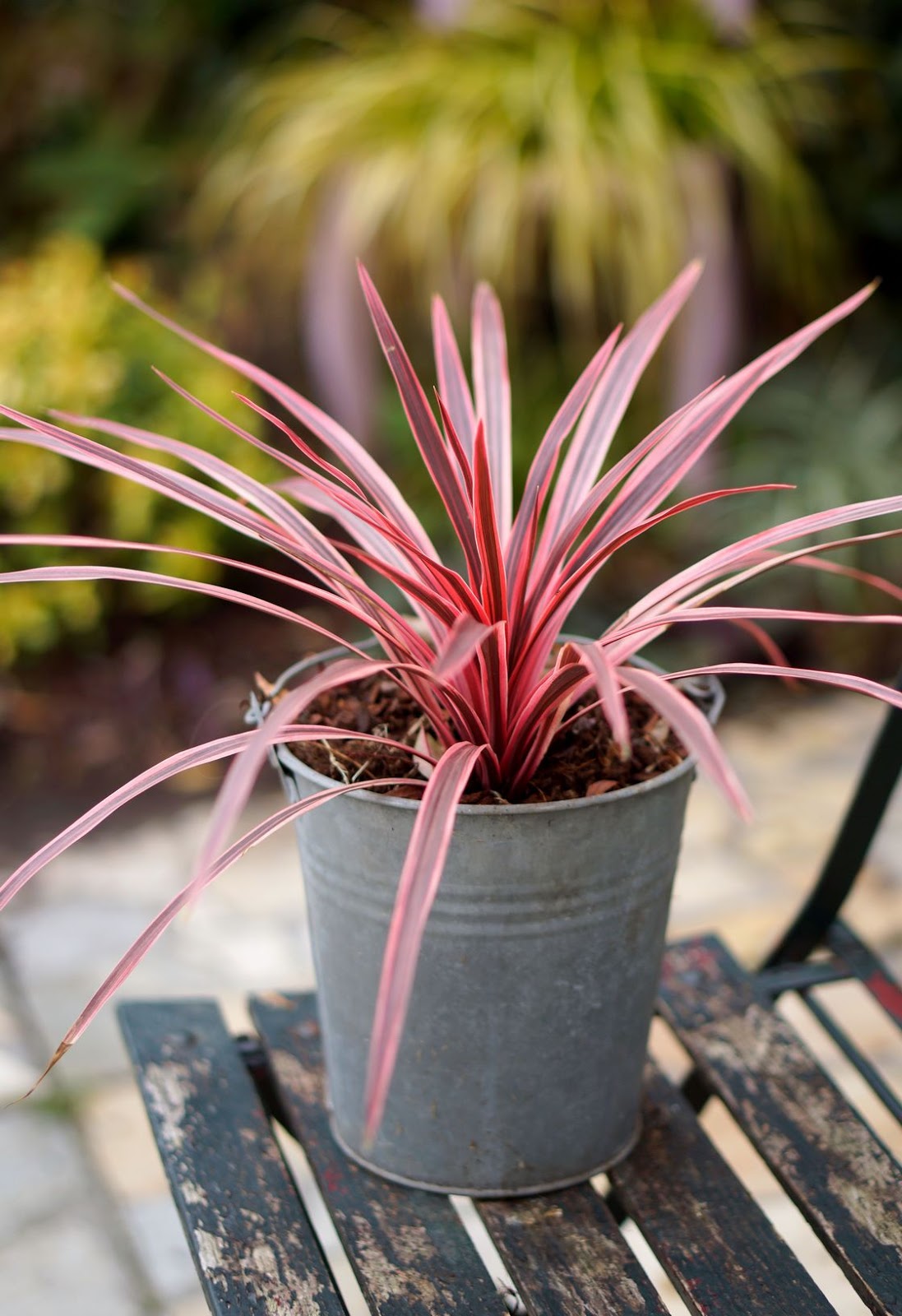 Su llamativo follaje variegado en color rojo y rosa puede ser una razón de peso para elegir Cordyline australis ‘Pink Star’, una planta que se mantiene compacta y mide unos 70 cm de alto y 50 cm de ancho. Puede cultivarse en el jardín y es también adecuada para contenedores, sola en combinación con otras plantas.