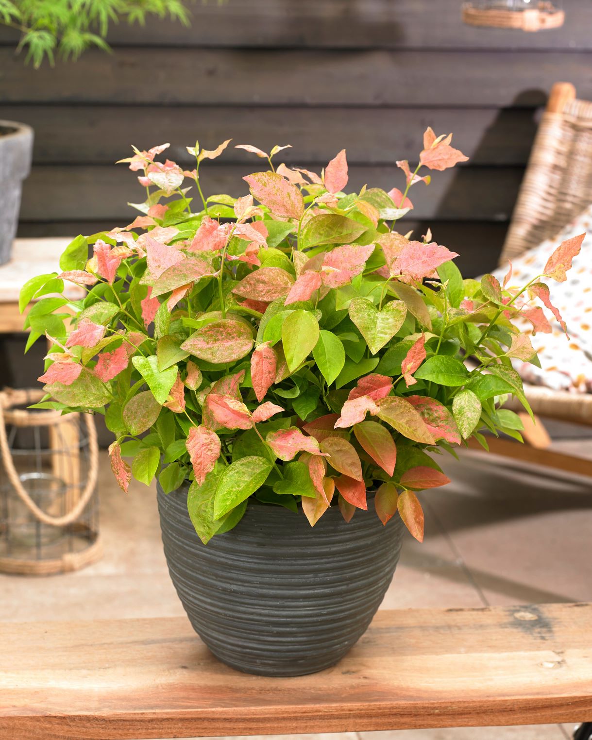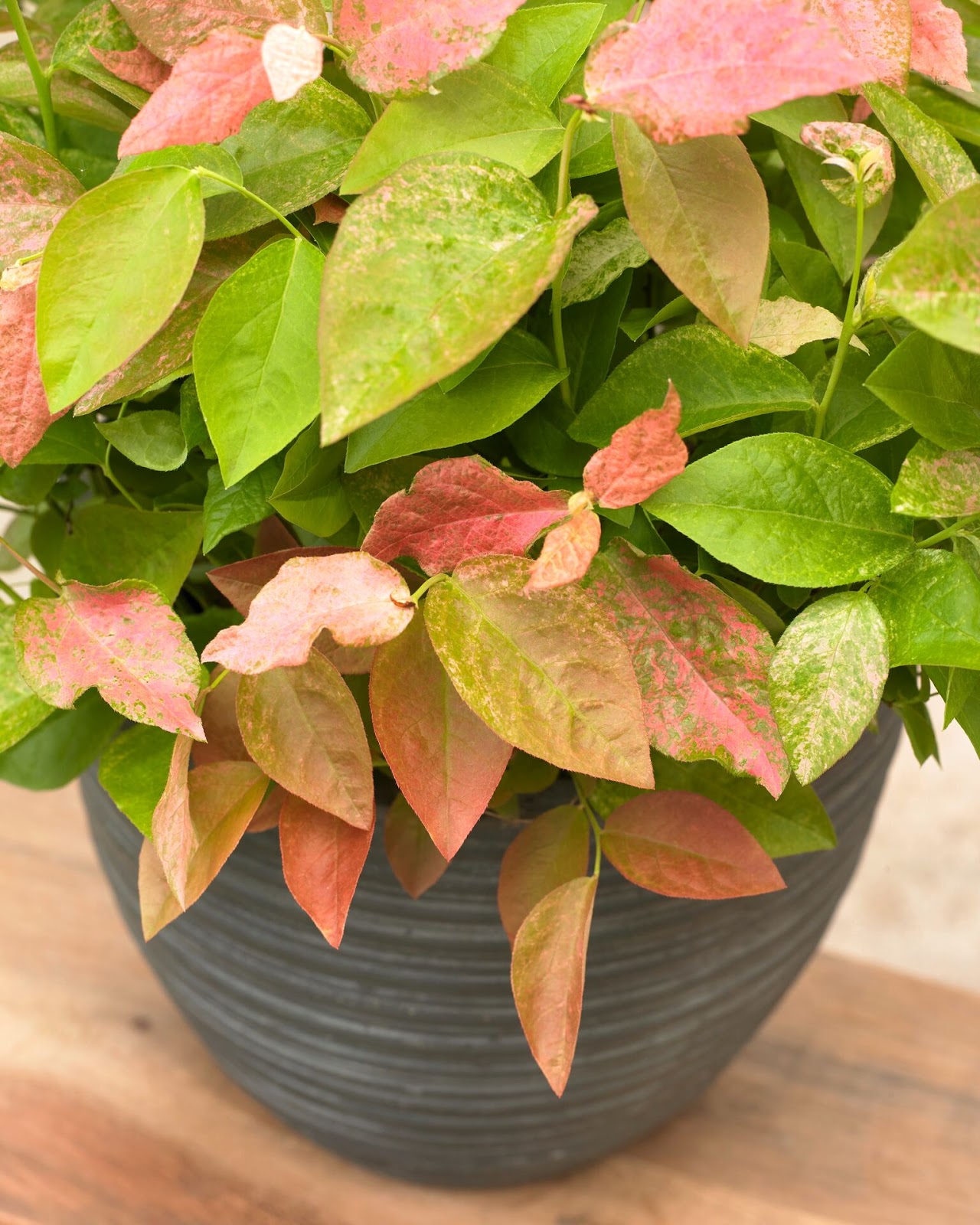 También con llamativo follaje, en este caso en colores rosa y verde, Vaccinium ‘Flamingo’ es un arbusto que además da mucha fruta, deliciosa y dulce, como lo hacen todas las especies del llamado arándano, del mismo género. Alcanza aproximadamente 1 metro de altura y 70 cm de ancho.