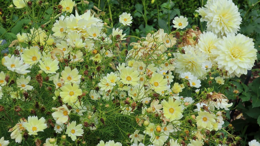 Cosmos bipinnatus ‘Xanthos’, Dahlia ‘La Luna’