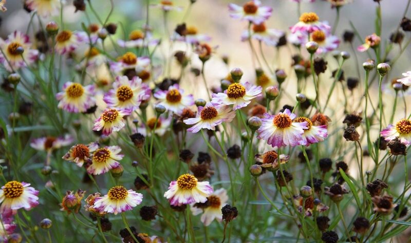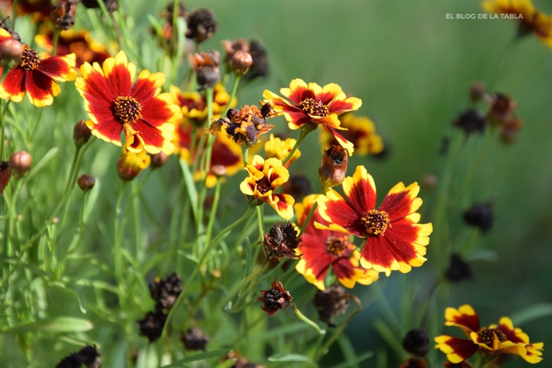 En inglés, Coreopsis es conocida como tickseed, que, traducido al español, lamento deciros, significa semilla de garrapata. Ese nombre común deriva del ligero parecido de sus semillas a las garrapatas. Pero vamos a dejar este tema y no centramos mejor en sus flores, esas cuyo néctar adoran las abejas y las mariposas; y sus semillas, que son un manjar para jilgueros y otras aves.