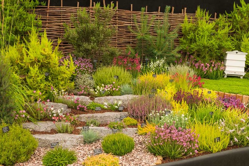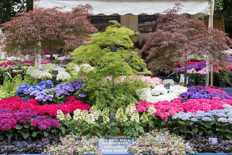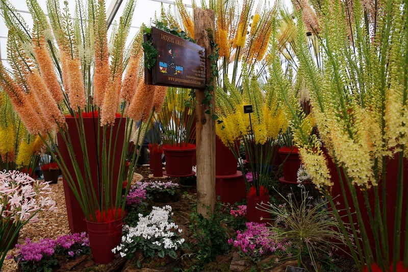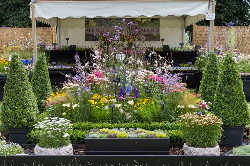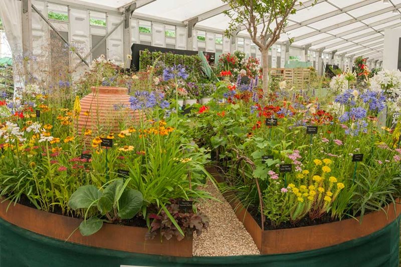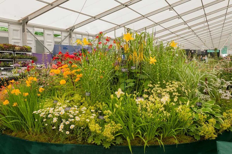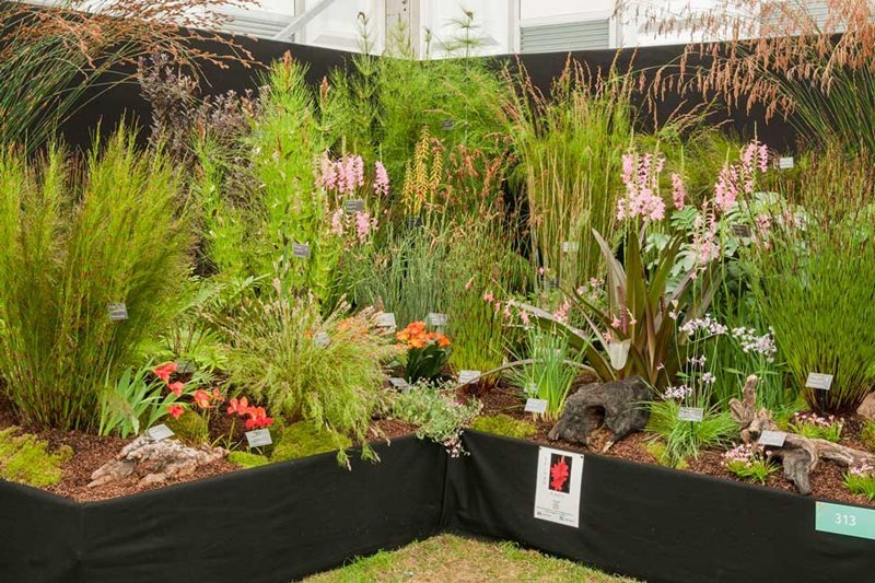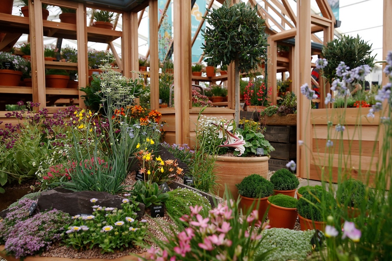 Gramíneas muy rústicas como Restio o plantas muy tropicales, como algunas orquídeas. Entre ambas opciones, en Hampton Court Flower Show se exhiben muchas especies y cultivares de plantas, flores para todos los gustos y detalles; combinaciones y detalles sugerentes, que pueden despertar aún más nuestro interés por la jardinería y la decoración con plantas.