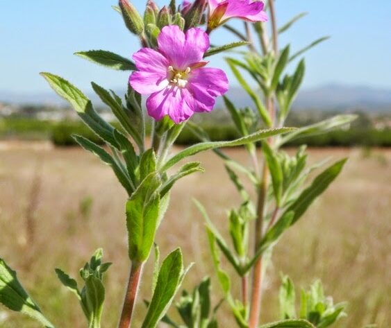También flores de Allium melananthum; de la recién llegada Epilobium hirsutum; de las aromáticas flores de tomillo macho (Teucrium capitatum); y más flores rosas de Centaurium quadrifolium y Convolvulus althaeoides.