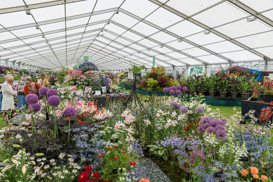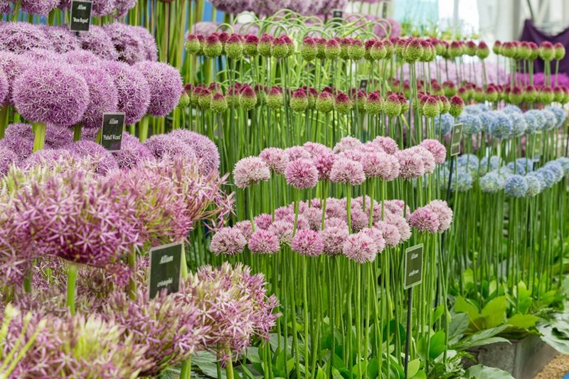 Stand de variedades de Allium en el Floral Marquee (WS Warmenhoven) •• © RHS
