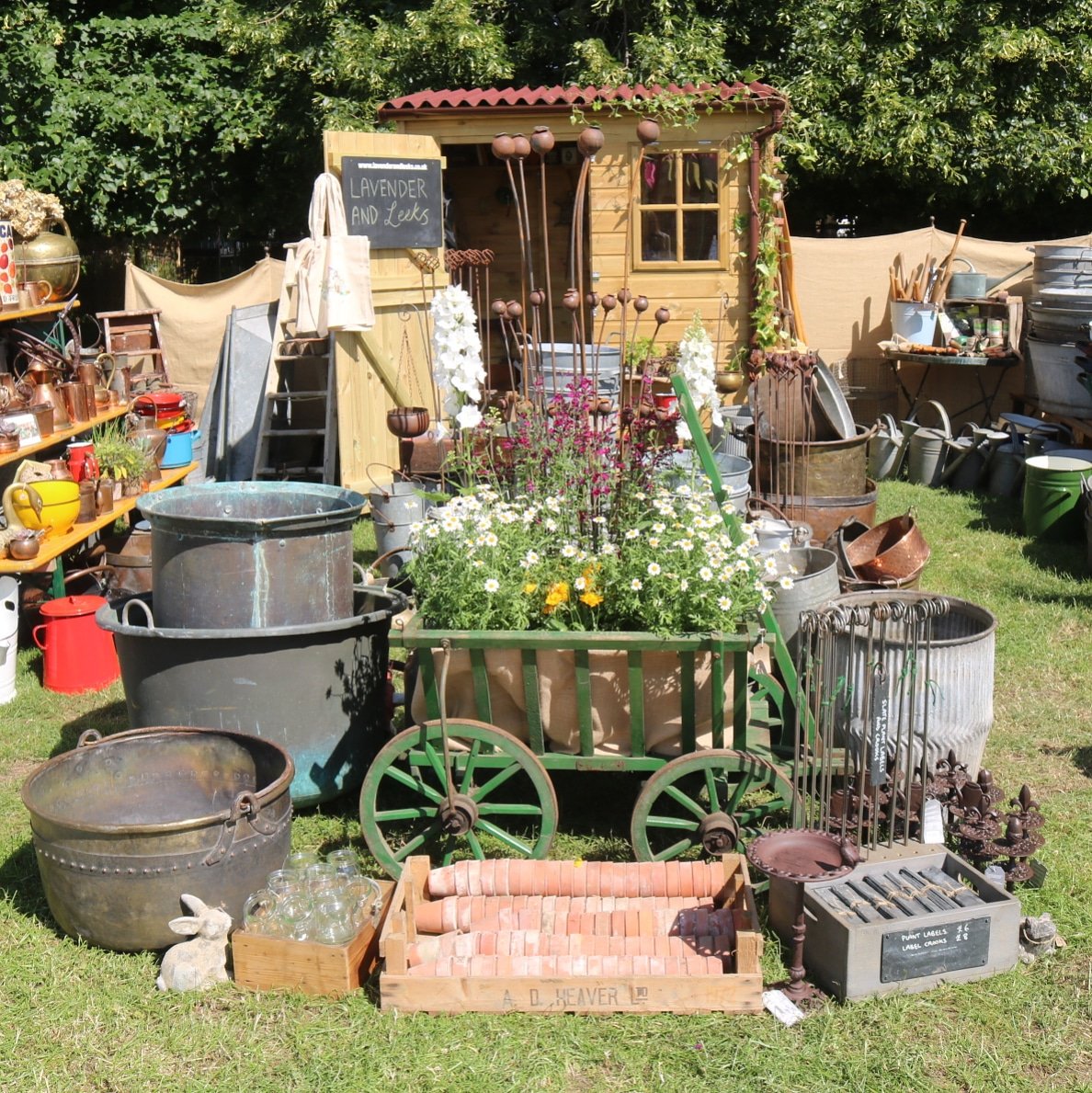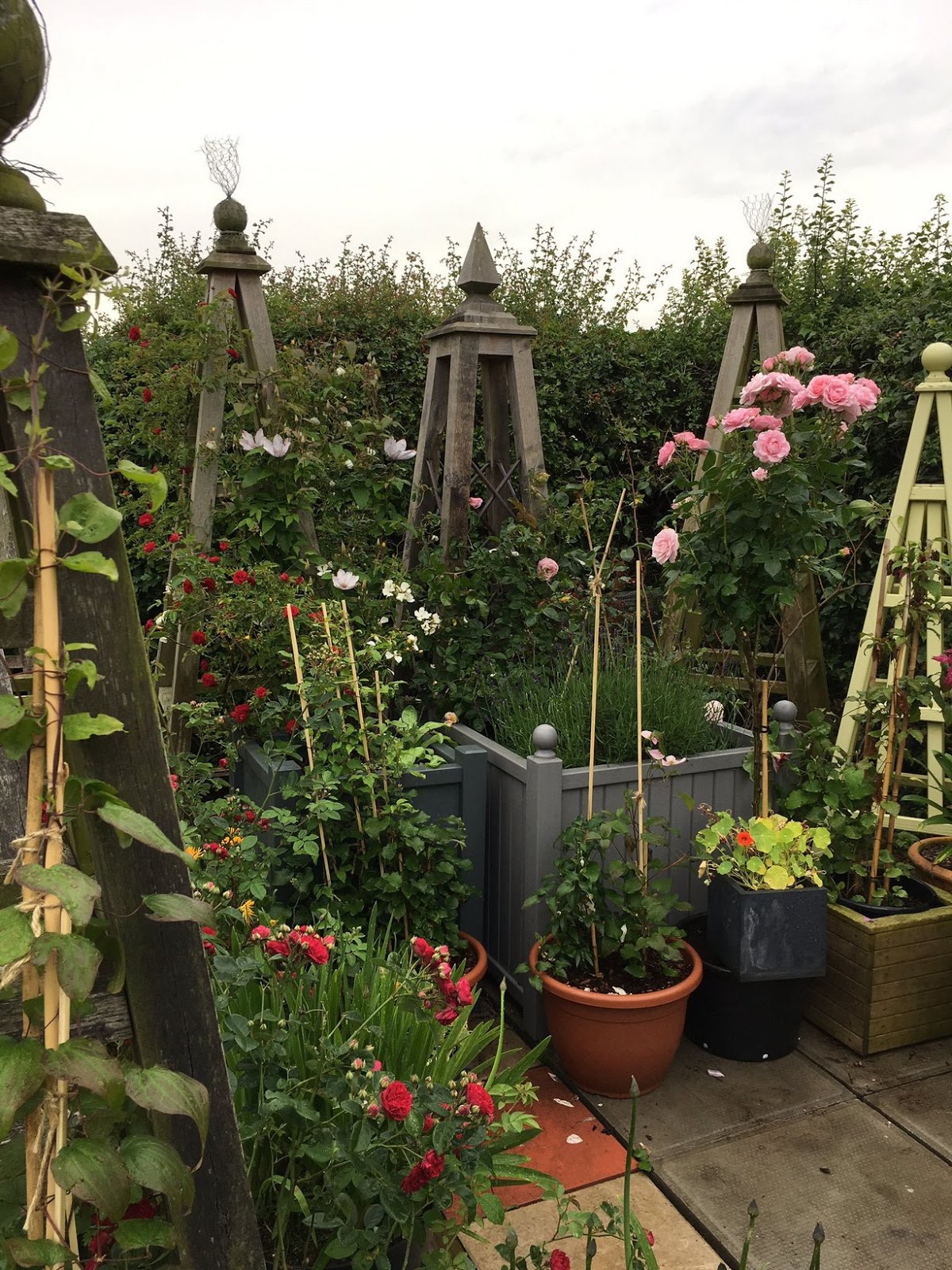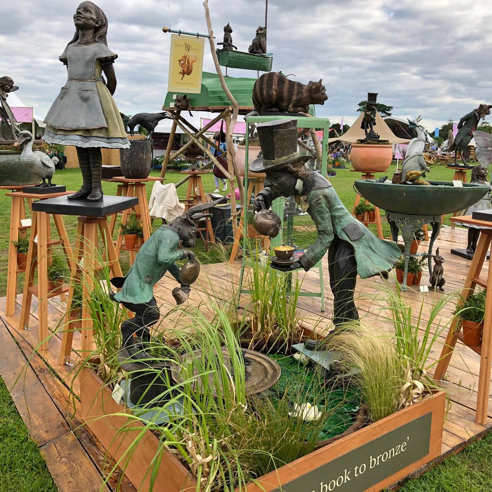 Obeliscos de madera en el stand de Garden Obelisc de RHS Hampton Court Palace Garden Festival 2019