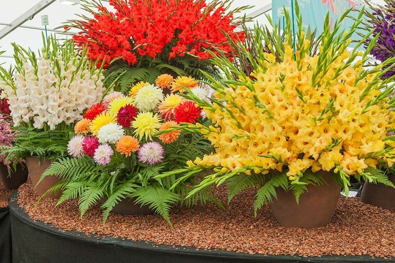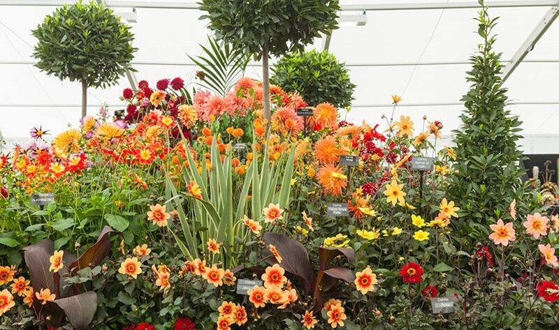 No faltó la exhibición presentada por The National Dahlia Collection con cultivares de dalia de colores encendidos, como la vibrante Dahlia ‘Mystic Wonder’.