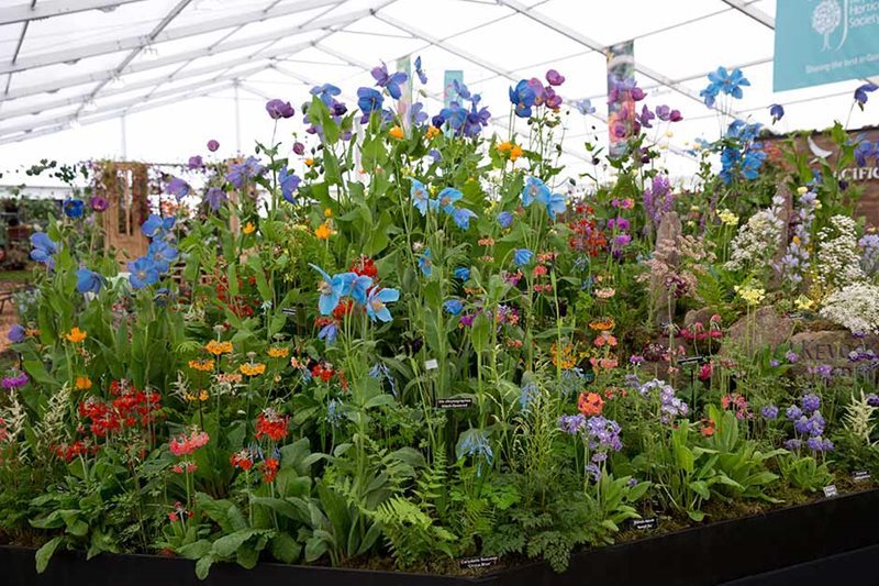Cultivares clásicos y nuevos de gladiolos, clemátides, Lewisia, plantas alpinas y alguna que otra más, incluida una planta de tomate o las atractivas amapolas azules –Meconopsis–
