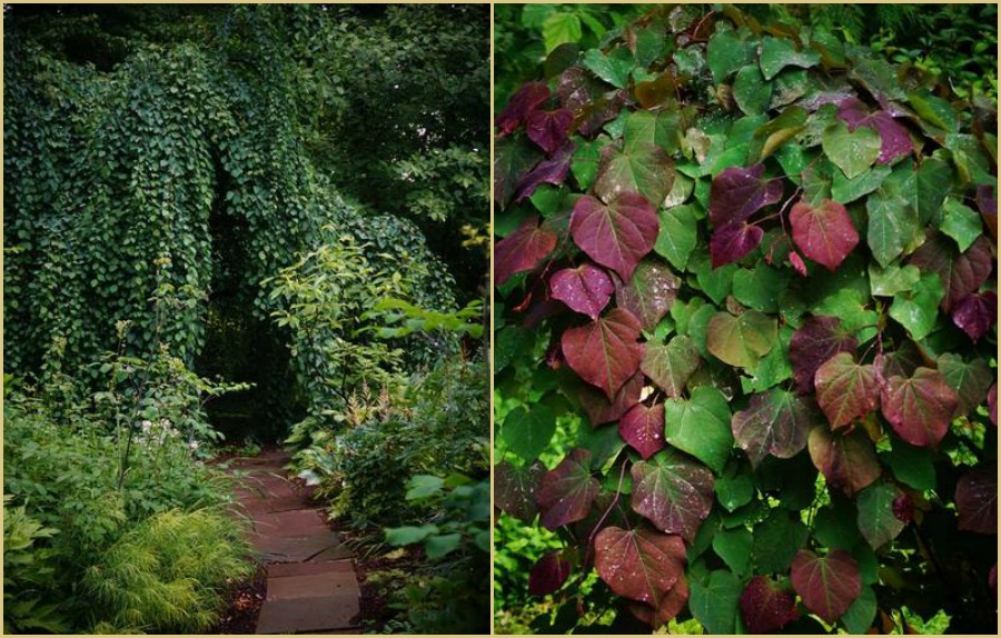| Tunel de Cercidiphyllum japonicum (izda) y Cercis canadensis ‘Ruby Falls’ •• Fiddle-i-fee-Farm •• Schuylerville, New York |