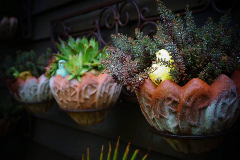 | Macetas de terracota y plantas suculentas •• Jardín en Saratoga Springs, New York |