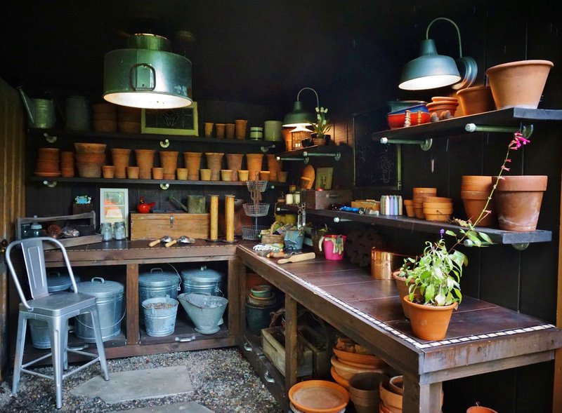 | Caseta con macetas de barro y otros artículos de jardín •• Jardín en Saratoga Springs, New York |