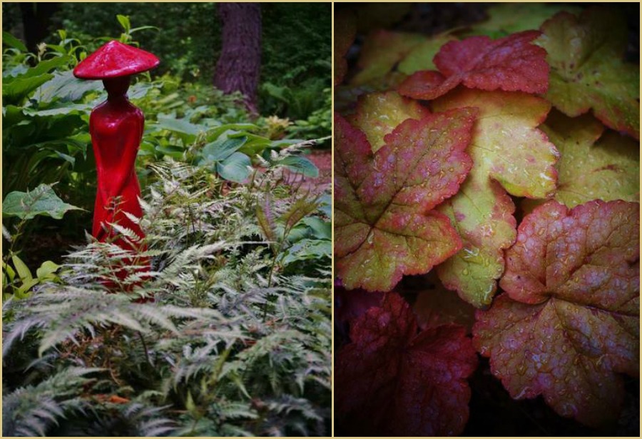 | Athyrium niponicum ‘Pictum’ (izda.) y Heucherella ‘Redstone Falls’ •• Dalton Garden •• Middle Grove, New York |