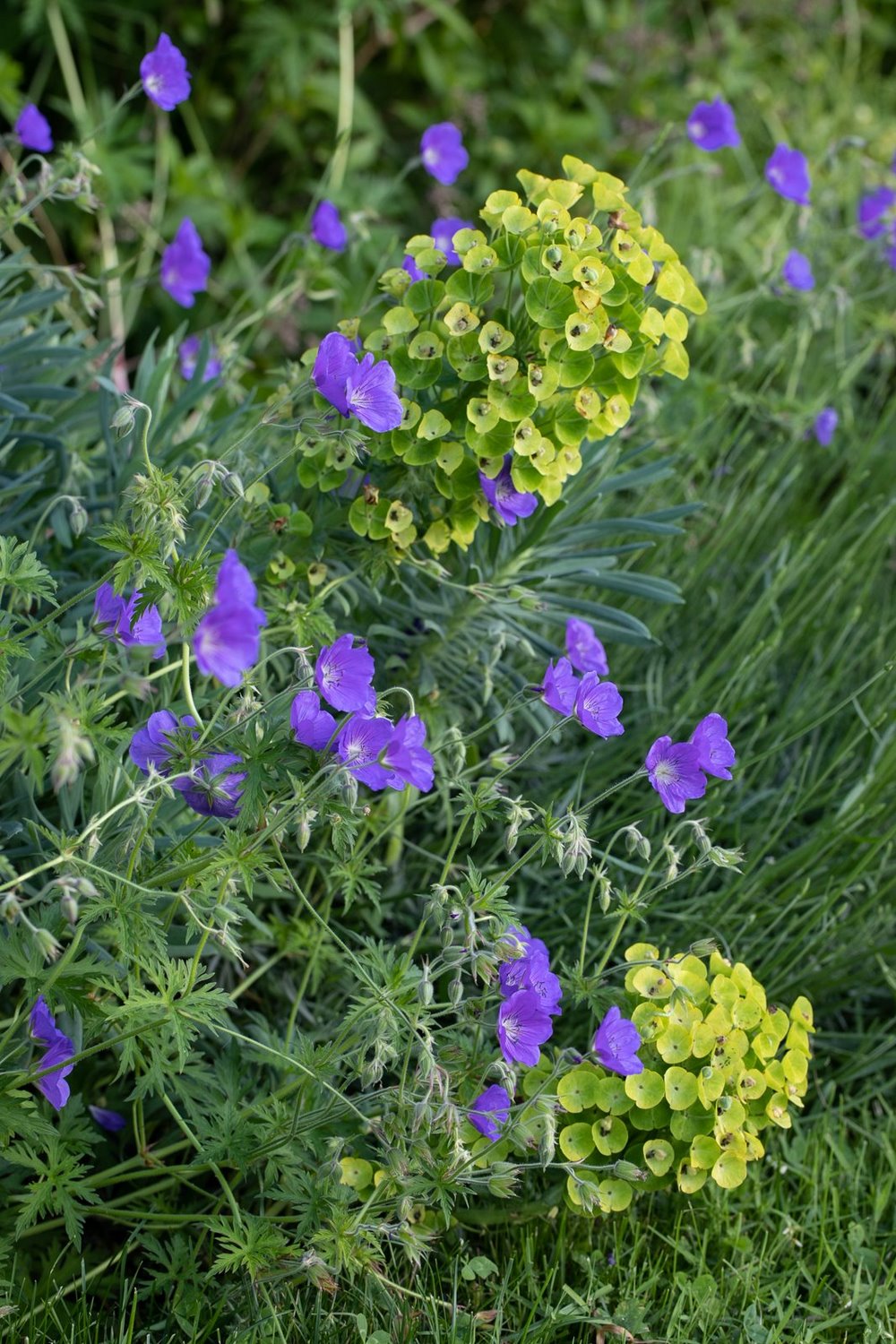 Geranium ‘Nimbus’ and Euphorbia characias ssp. wulfenii. Junio 2020