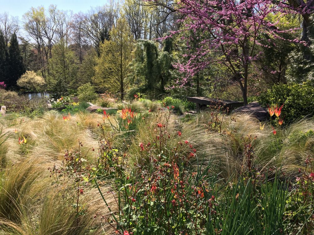 El jardín de grava de Chanticleer se construyó en una ladera soleada y seca orientada al suroeste, donde cultivan una diversidad de plantas herbáceas, bulbos de flor y suculentas. Son plantas seleccionadas para que no necesiten agua adicional y que les permite imitar algunos jardines de California, evocando un ambiente mediterráneo sin moverse de Pensilvania. Todo un reto que parece haberse cumplido.