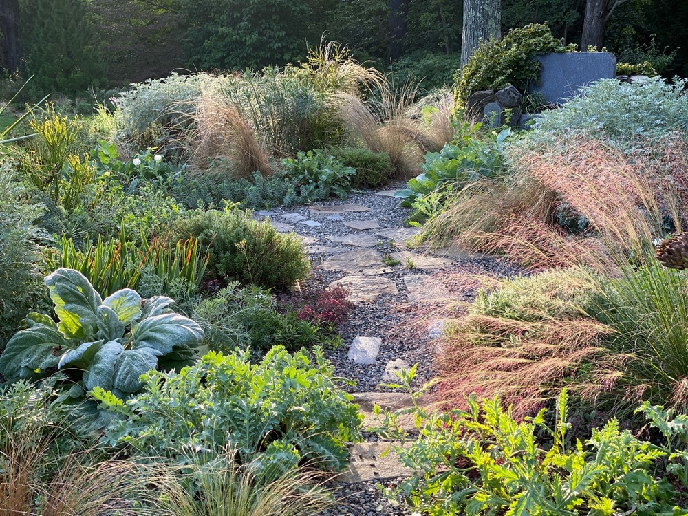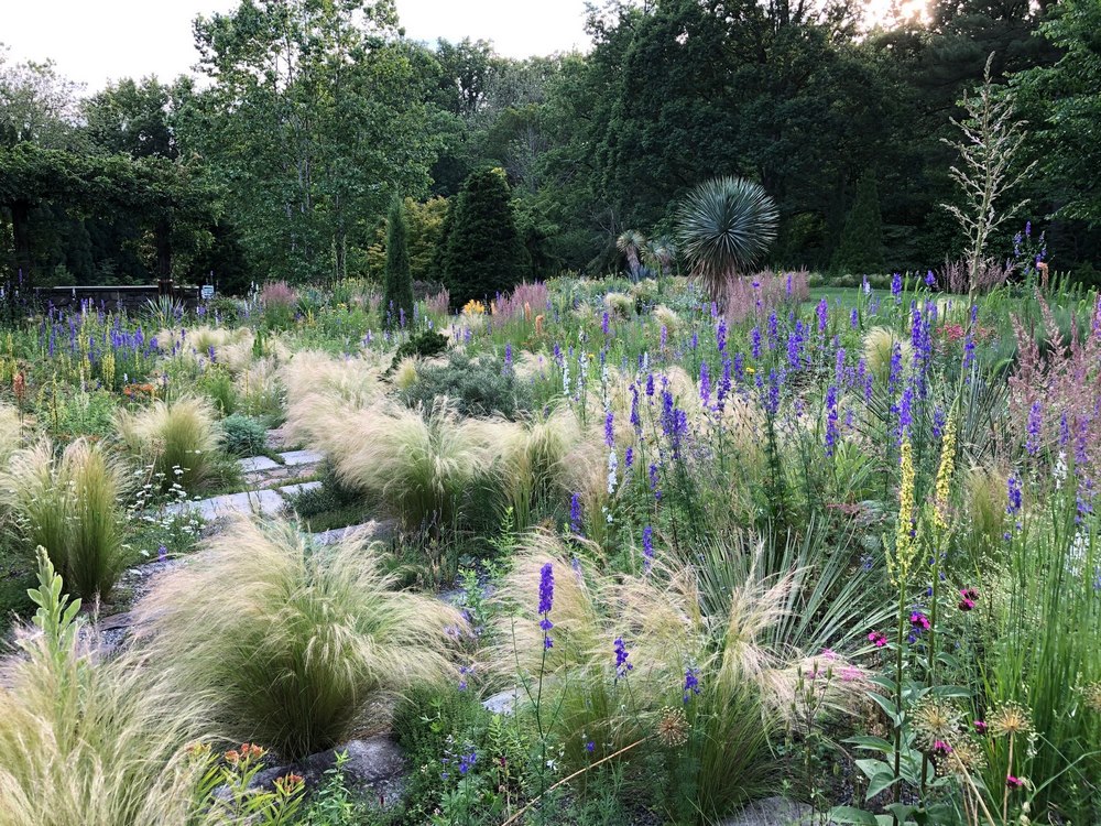 Tuvieron que enmendar el suelo con grava para mejorar el drenaje, consiguiendo que un lugar cálido y seco fuera aún más seco, un espacio xerofítico donde crecen plantas que no necesita agua adicional y les permite imitar algunos jardines de California sin moverse de Pensilvania. Todo un reto que parece haberse cumplido.