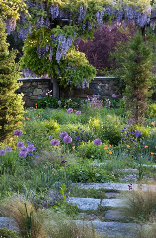 | Emparrado de Wisteria sinensis ‘Amethyst’ en el Gravel Garden |