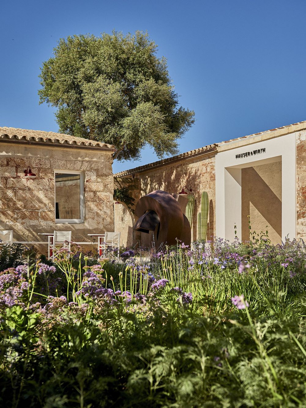 Ubicada en Isla del Rey, un islote frente al puerto de Mahón, Hauser & Wirth Menorca ha sido fruto de la restauración de un conjunto de edificios históricos, convertidos en un espacio expositivo con ocho galerías. Junto a los edificios de la galería de arte y los senderos de esculturas al aire libre, los jardines diseñados por el paisajista holandés Piet Oudolf se han convertido en un valor añadido, con una interesante selección de plantas herbáceas perennes adaptadas al clima mediterráneo que soportan estoicamente las altas temperaturas estivales. Isla del Rey