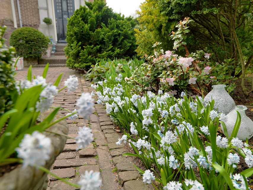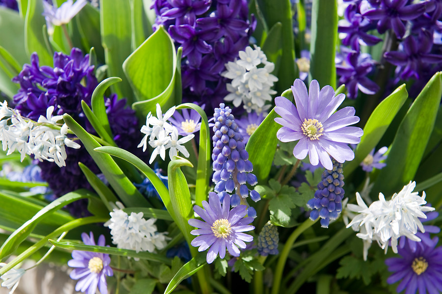 Muscari armeniacum, Anemone ‘Blue Ribbon’, Puschkinia libanotica, Hyacinthus Peter Stuyvesant •• Foto iBulb