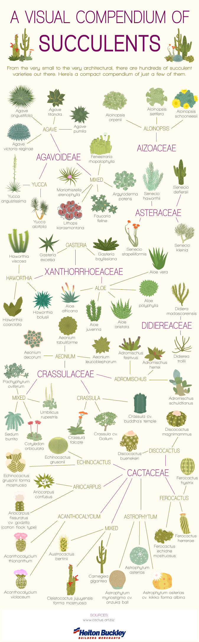 infografia con familias y especies de las plantas suculentas