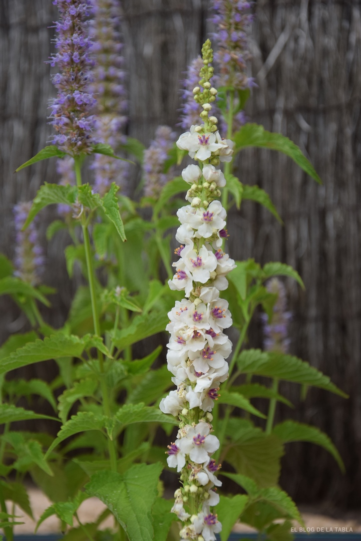 Una de las grandes alegrías este año me la ha proporcionado un verbascum (Verbascum chiaxii ‘Album’) que he cultivado a partir de semillas. Me ha llevado casi un par de años lograr ver sus maravillosas inflorescencias en espigas, pero la espera mereció la pena. Claro que, eso no significa que desprecie nuestras especies autóctonas, también hay hueco para los gordolobos, como Verbascum sinuatum.