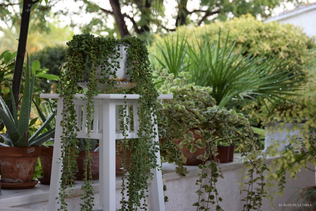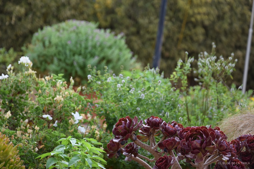 Las plantas suculentas merecen un capítulo aparte, porque nunca creí que iba a decir que eran mis plantas preferidas. Pero a la fuerza ahorcan, y si no hay agua, hay que pensar en alternativas sostenibles que, sin renunciar a la belleza, nos permitan manejan los jardines con criterios de sostenibilidad. En mi caso, salvo un par de agaves (Agave desmentiana) que tengo plantados en tierra, todas las suculentas las estoy cultivando en maceta y bien controladas. Algún día hablaré de mi pequeña colección.