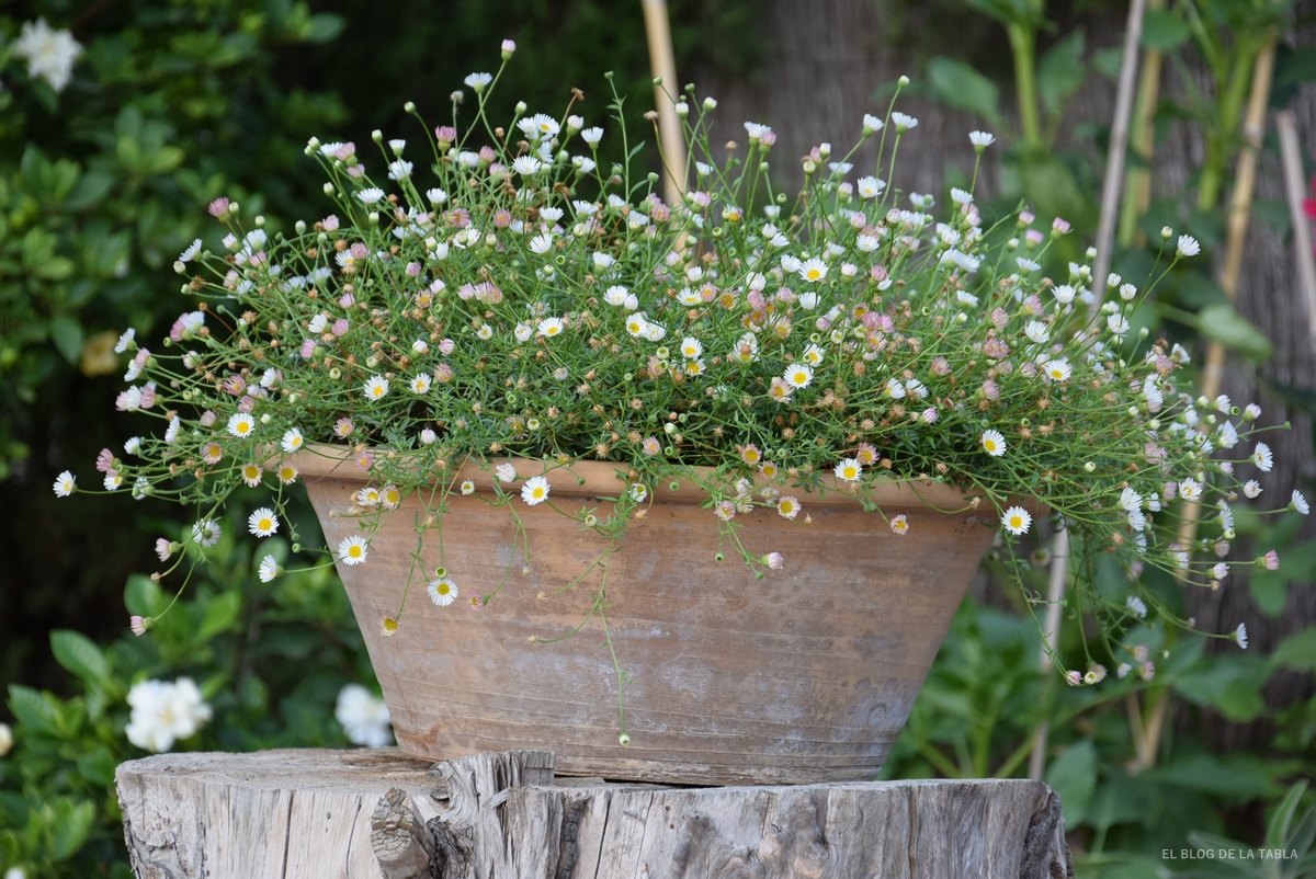 Pero en este particular álbum de fotos vamos a encontrar más plantas, plantas autóctonas, como el lentisco y Globularia alypum; flores silvestres que ven pasar los días; plantas cultivadas como asters, solanum o buganvilla y hasta algún que otro pequeño bouquet de flores del palo borracho (Ceiba speciosa) de los vecinos he disfrutado este verano.