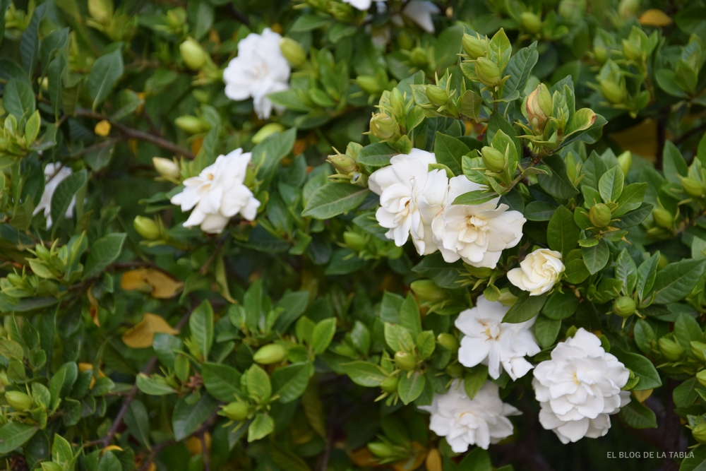 Hablando de fragancia, las gardenias (Gardenia jasminoides) no podían faltar, claro que no, a esta larga temporada estival. Han florecido con ganas desde finales de mayo hasta hace apenas unos días. Es la ventaja de hacerse mayor, dicen ellas, todas llenas de razón.
