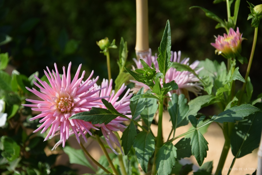Hoy comparto las fotos de algunas de las plantas que me han acompañado durante el pasado verano, y por verano tenemos que entender una estación que este año se ha extendido hasta el mes de noviembre. Además, ha sido un verano caluroso, sí, terriblemente caluroso y eso ha motivado que las plantas se resientan, como nosotros lo hacemos. Pero, entre una cosa y otra y con ayuda del riego, he logrado disfrutar un año más de dalias, esas dalias de flores inmensas que esta temporada no me han regalado flores de delicado color blanco roto (Dahlia ‘Playa Blanca), pero que han florecido abundantemente en otros colores. También he disfrutado un año más de las zinnias, qué plantas tan agradecidas, alegres y generosas. No dejan de florear durante todo el verano y acompañan a las dalias hasta bien entrado el otoño también.