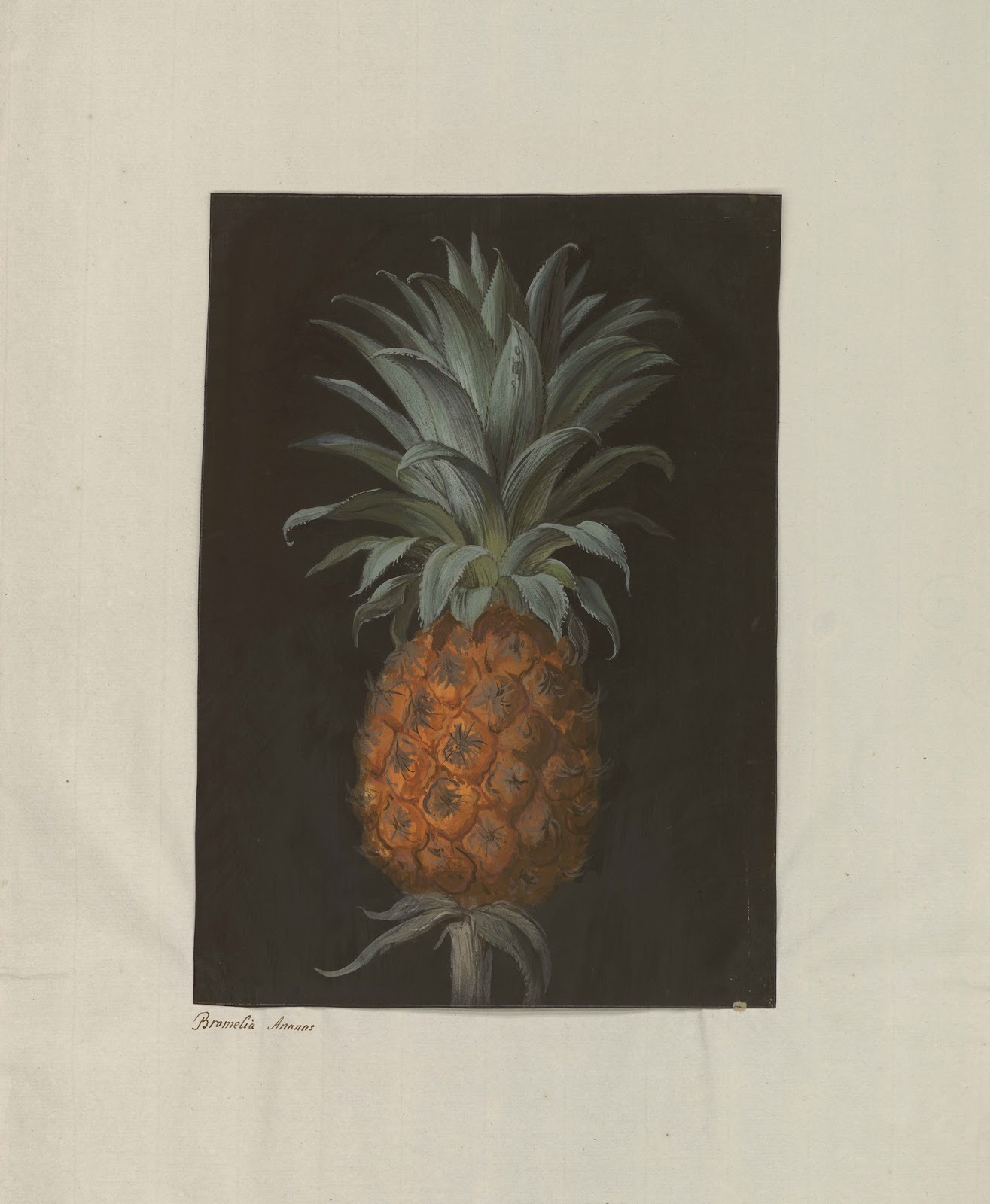 Ananas comosus Merrill (Bromeliaceae) • Anónimo. Antes de 1784 Aguada y acuarela sobre papel