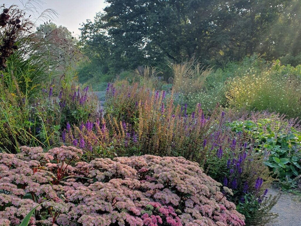 No ha sido así, sin embargo, en el Reservoir Garden, donde el equipo de jardinería ha tenido que esforzarse en limitar los daños causados por la sequía a las plantas menos tolerantes: “El suelo arcilloso mejorado en esta área del jardín es perfecto para arbustos y plantas vivaces que requieren un suelo más rico que retenga la humedad; plantas tales como Equinacea, Phlomis, Helenium, Vernonia y Rudbeckia. Con acceso a un suelo rico en nutrientes y un suministro constante de humedad, estas plantas generalmente prosperan, crecen altas y producen grandes cantidades de flores al final de la temporada”.