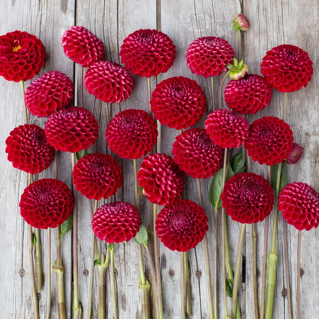 Después de 200 años de cultivo, obtención de selecciones e hibridación, las dalias (Dahlia) actualmente tienen una de las mayores variaciones de formas, colores y tamaños de cualquier flor cultivada, por lo que no es difícil encontrar una selección diversa de dalias con flores que van del rojo al casi negro.