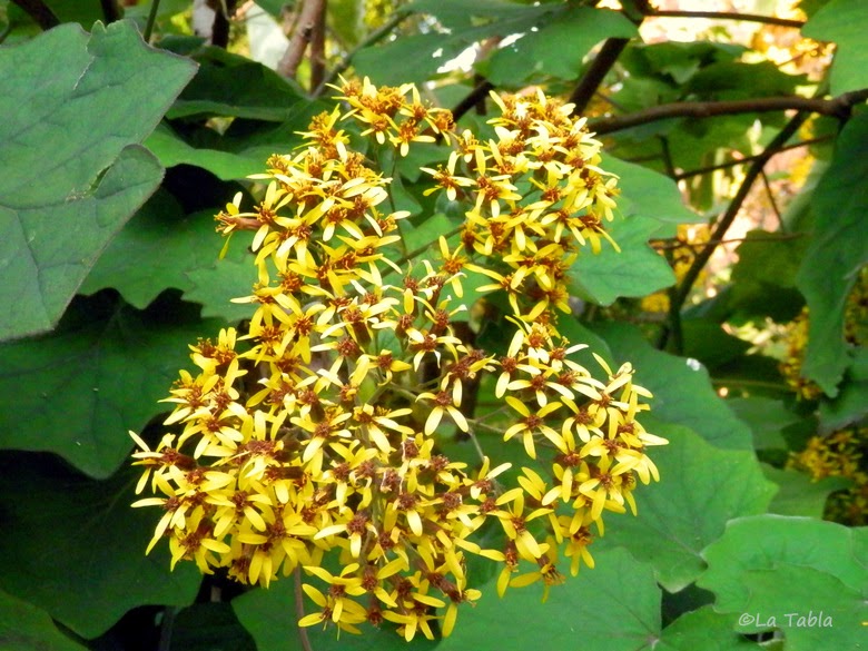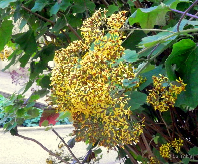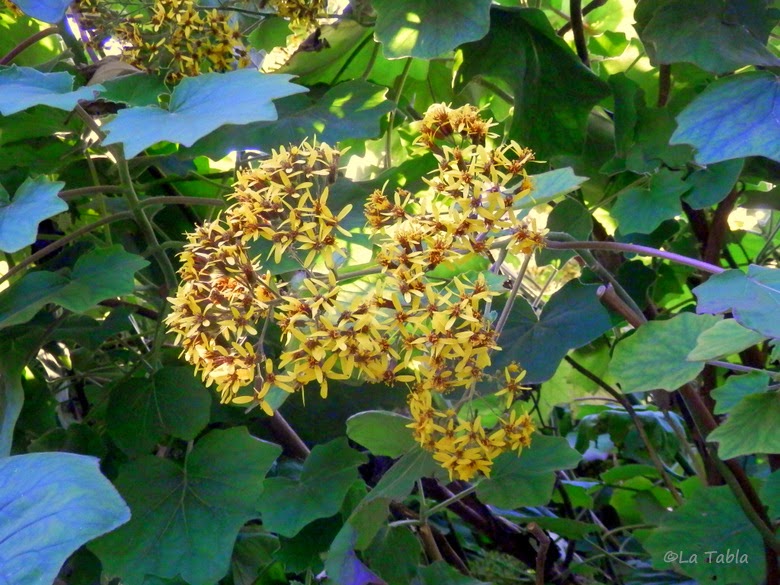 Viene de México para mostrarnos su grandes hojas con 7 o más lóbulos anchos que le dan un aspecto majestuoso. Crece alto (hasta 1,8 metros de altura) y sus cabezuelas de flores amarillas tienen la forma característica de las plantas compuestas y recuerdan mucho a las del Senecio angulatus y la Cineraria maritíma.