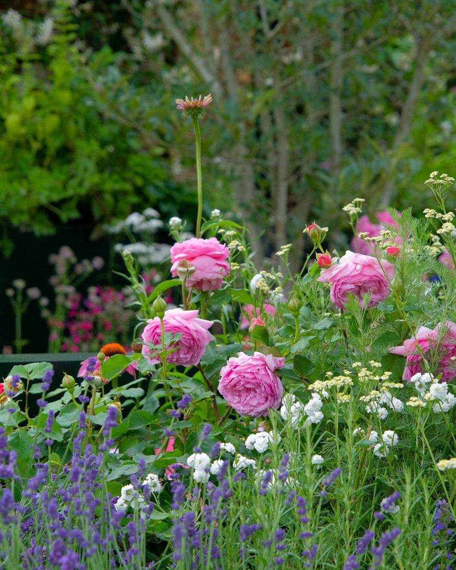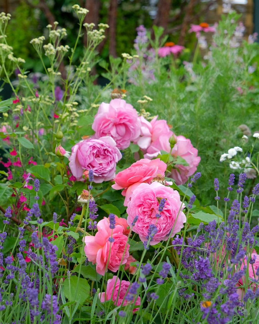 Pero en el centro de ese jardín fragante reinan las rosas, sin hacer de menos a la compañía. Nicola Hale consultó a David Austin Roses qué variedad le sugerían para incluir en el esquema de plantación. La elección fue la Rosa ‘Princess Alexander of Kent’, teniendo en cuenta su fabulosa fragancia y color, que combinan a la perfección con las inflorescencias de lavanda, salvia y otras plantas fragantes con gran valor ornamental presentes en ese jardín.