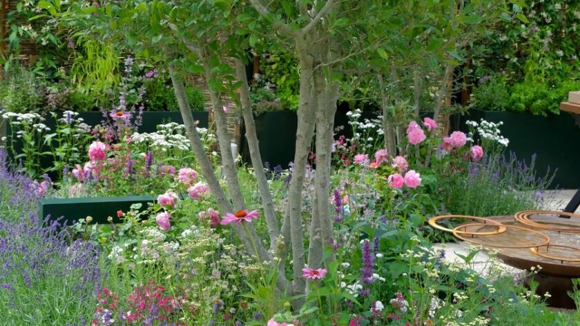 Pero los rosales están presentes también, con mayor o menor abundancia, en algunos de los jardines de exhibición de RHS Hampton Court Garden Festival . Este año, por ejemplo, en el apartado Get Started Garden, que pretende inspirar a jardineros principiantes e impulsar las carreras de los diseñadores en ciernes, Nicola Hale ha diseñado el Landform Mental Wealth Garden, cuyo objetivo es “promover la sensación de bienestar” y lo hace uniendo el aroma y la belleza de la plantación.