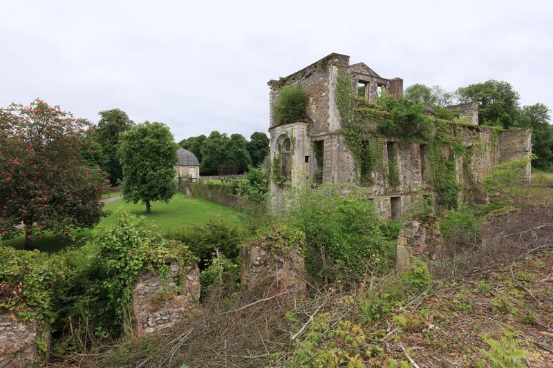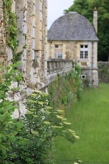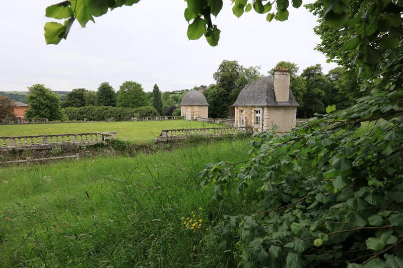 Al castillo le rodea un parque de 70 hectáreas, y en su día se había creado un jardín diseñado “a la francesa” y borduras de flores «a la inglesa». Para suavizar la pendiente se crearon grandes terrazas, muy al gusto de la época. Tanto el castillo como el parque sufrieron importantes daños durante la batalla de Normandía en 1944.  Desde entonces la propiedad no ha sido reconstruida, a excepción de la capilla