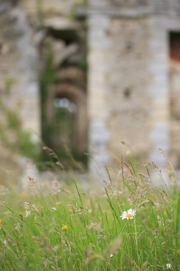 El resto, lo que rodea a esas ruinas,  es un jardín espontáneo lleno de valor paisajístico; un “tercer paisaje” que resulta muy evocador, sin duda, y que podría confirmar la teoría de Gilles Clement, cuando sostiene que lo interesante comienza una vez que el paisajista ha finalizado el trabajo en ese jardín, un jardín que no se acaba nunca, porque a partir de ese momento es cuando se desarrolla y no deja de evolucionar, incluso cuando no hay nadie que lo mantiene. Pradera, árboles, arbustos, vivaces y anuales. No parece faltar nada. Bueno, sí, el castillo.