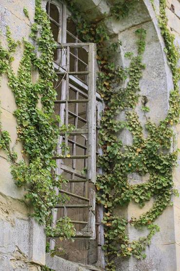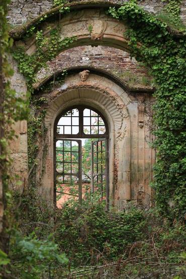 Las fotos permiten ver los restos que aún se conservan de lo que en su día fue el Castillo de Harcourt y su jardín paisajístico. Allí y ahora, el desarrollo de la vegetación espontánea se presenta como lo que podría ser un perfecto ejemplo de lo que el jardinero, paisajista y botánico francés Gilles Clément definió como “El tercer paisaje” («Le Tiers Paysage»).
