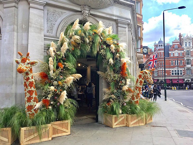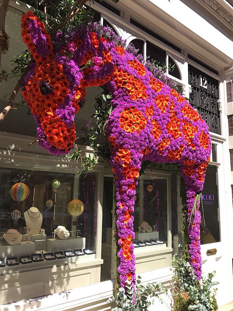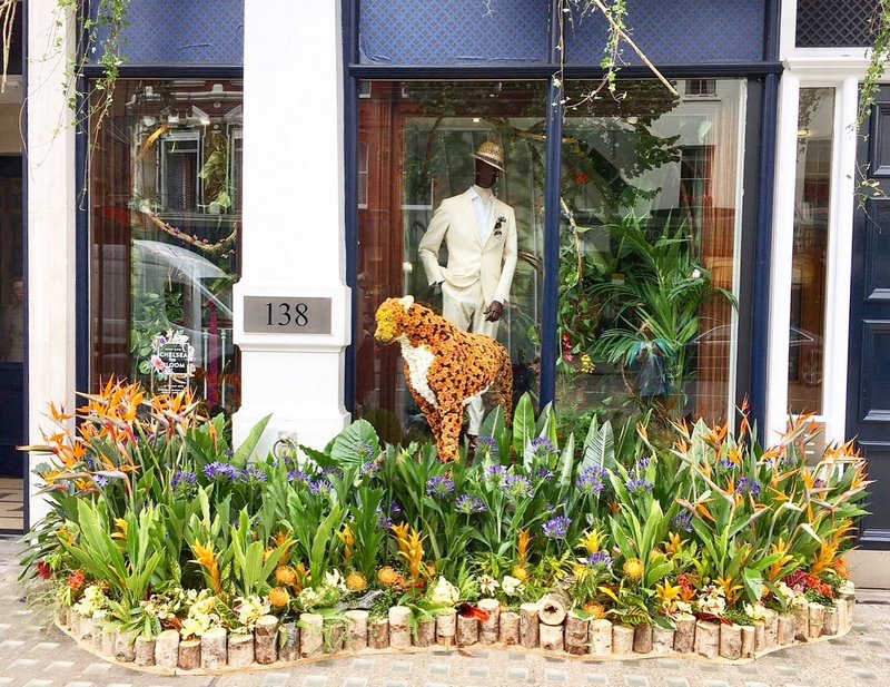 Son tiendas, restaurantes, bares y hoteles ubicadas en diferentes áreas de ese barrio londinense, como Duke of York Square; King’s Road; Sloane Street; Pavilion Road y Sloane Square, que parecen haber creado una peculiar expedición a la selva. Obviamente, cuentan con la posibilidad de que más de un transeúnte se pare atraído, no solo por sus vistosas calles y escaparates, sino también por sus productos o servicios. Sea como sea, el espectáculo está servido… y las flores también.