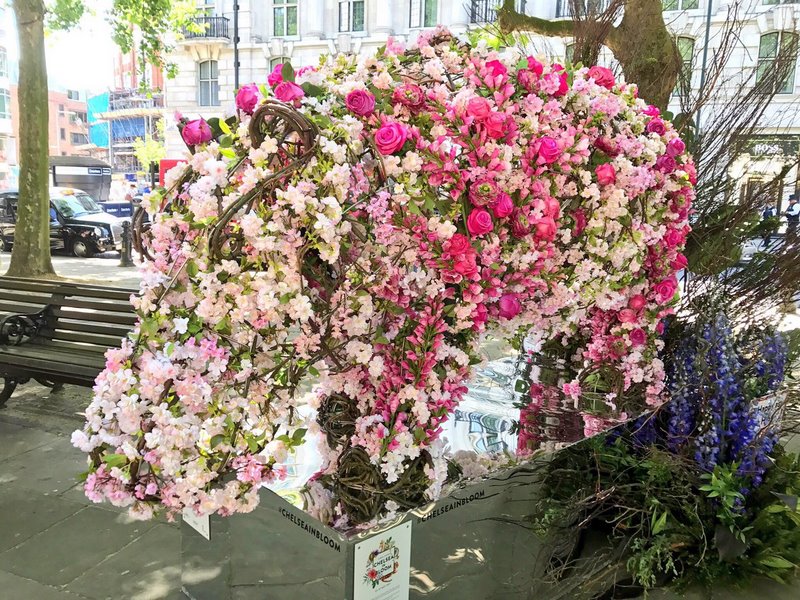 He mostrado el aspecto de este espectáculo de arte floral en otras ediciones, podéis verlo en este enlace. Chelsea in Bloom es un evento, producido por la firma Cadogan en asociación con la Royal Horticultural Society (RHS), que transforma las calles del barrio de Chelsea, del 22 al 27 de mayo, con llamativas instalaciones florales.