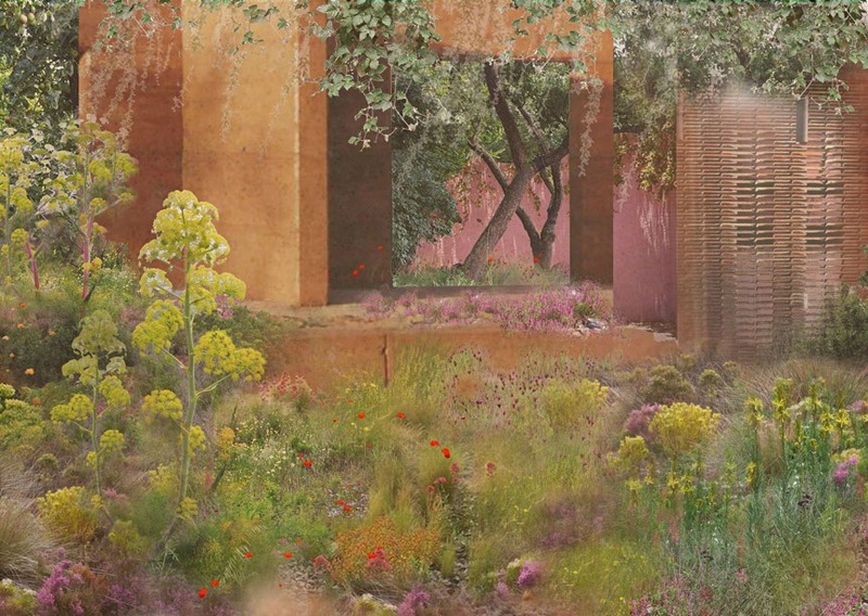 Ese paraíso romántico que ha diseñado, pretende ampliar la idea de que una pared, un árbol y un asiento pueden crear un lugar de reposo tranquilo e íntimo. Y para lograr ese efecto se ha inspirado en el Mediterráneo. Dará vida a esa historia utilizando flora mediterránea y materias primas extraídas directamente de la tierra (agregados de suelos rojos, arcilla y terracota) para proporcionar una sensación de calidez y riqueza.