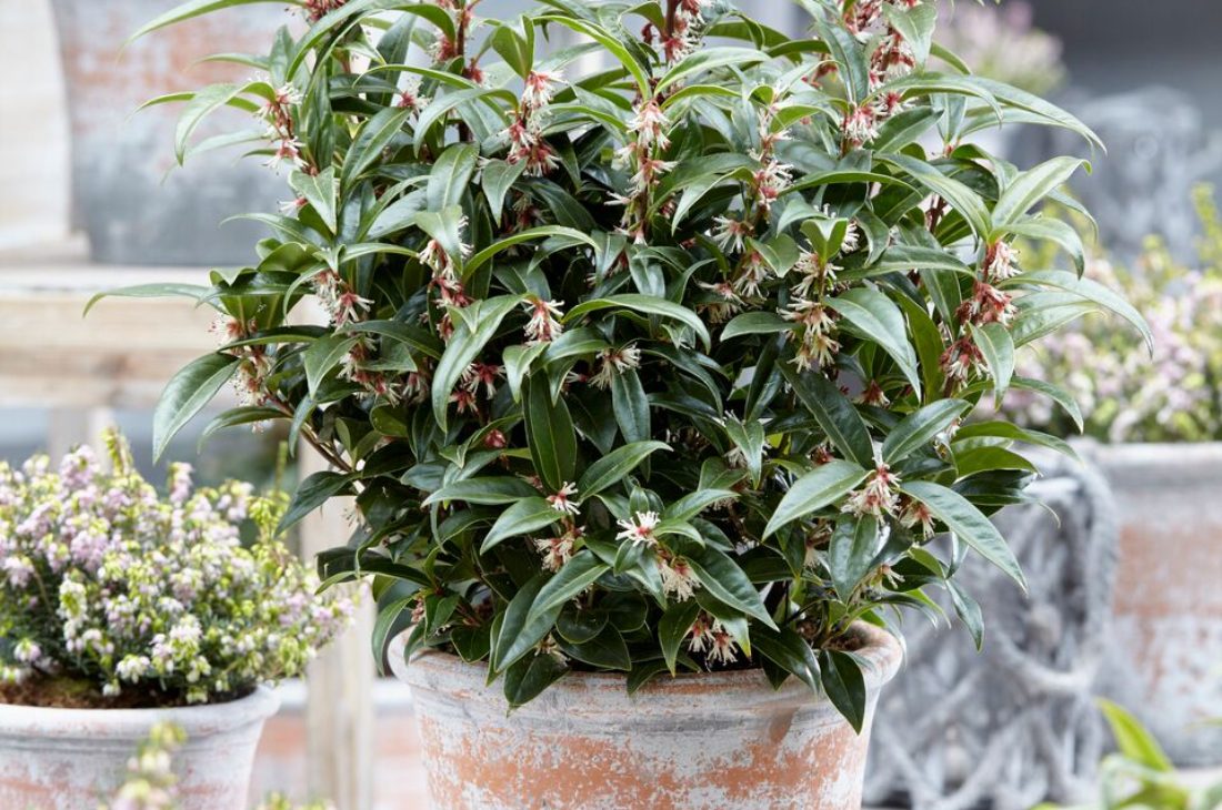 Sarcococca es un género de plantas formado por elegantes arbustos de hoja perenne, muy resistentes y fáciles de cultivar, que añaden interés al jardín durante los meses de invierno, no solo por su atractivo follaje verde oscuro, sino también por sus fragantes flores blancas que surgen entre diciembre y marzo y que son reemplazadas por bayas rojas brillantes que maduran a negro en otoño.