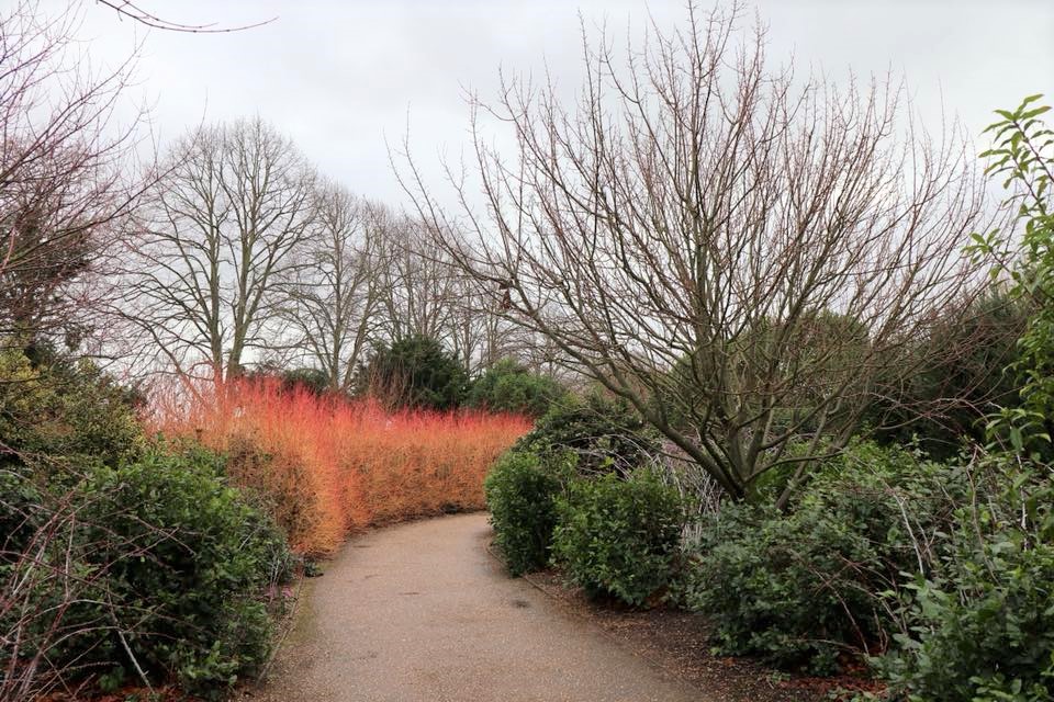 Sarcococca junto a viburnums y Salix en el Winter Garden de Anglesey Abbey •• Fernando Ruz