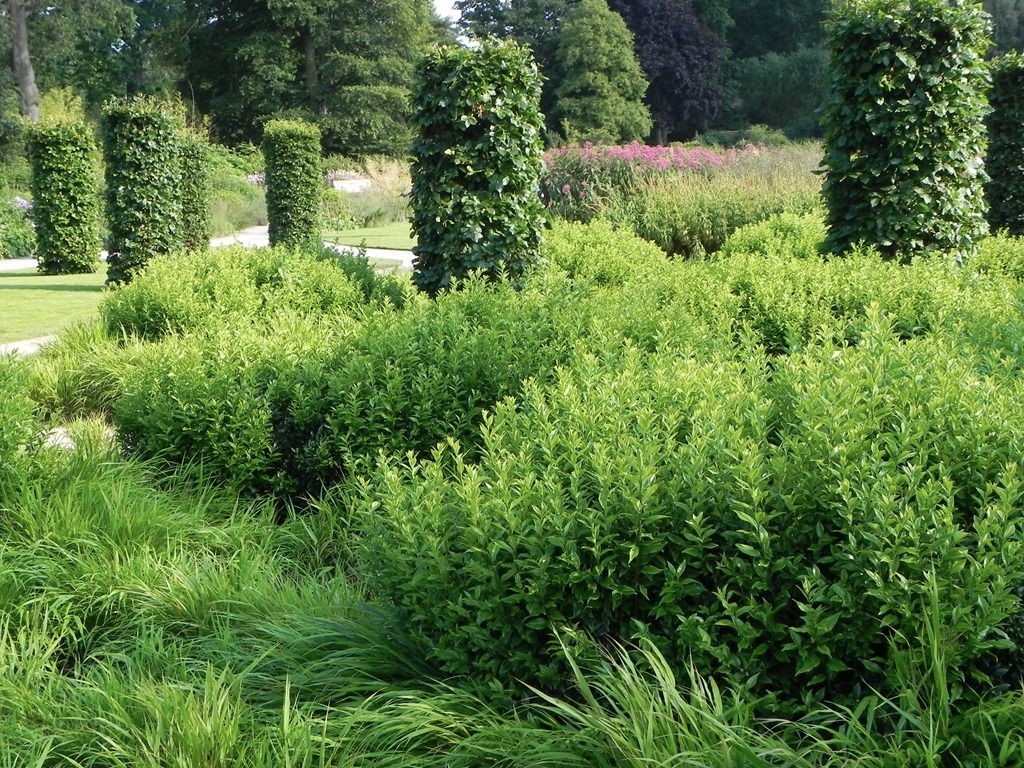Parterre de boj y tilos tallados subplantados con Sarcococca confusa en la terraza inferior en Broughton Grange •• Flickr