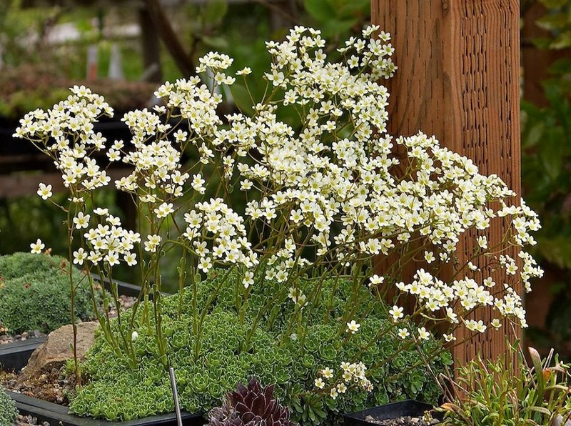 Saxifraga paniculata es una de las especies más resistentes y persistentes, de ahí su nombre común «Saxifrage para toda la vida». Dentro de esta sección existe otra especie fácilmente cultivable, Saxifraga callosa.