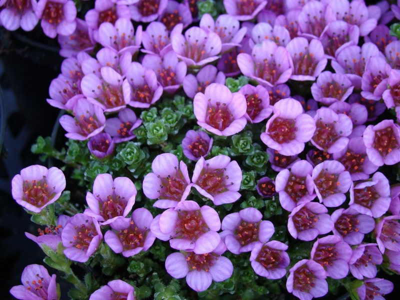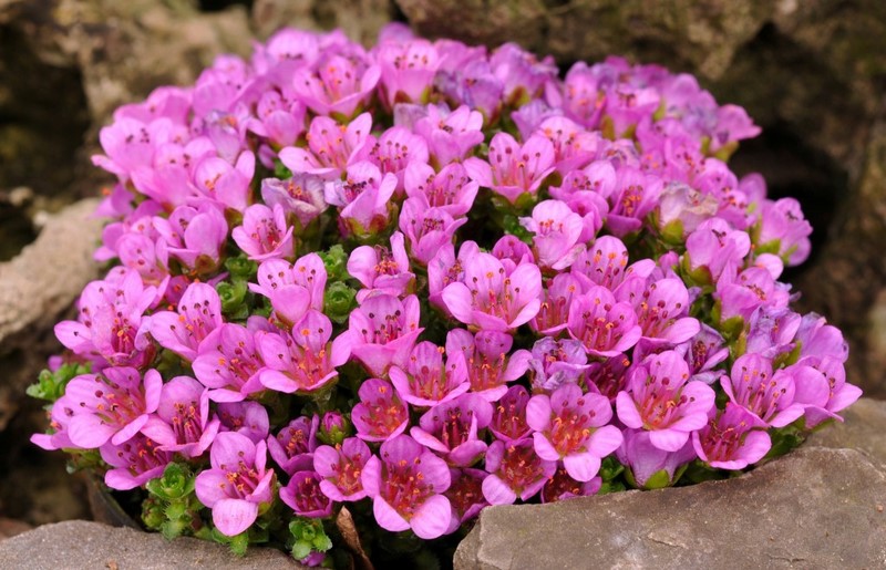 Los numerosos híbridos de saxífragas musgosas que existen en los jardines nos regalan plantas muy valoradas, no solo por la floración profusa en primavera y verano, sino también por sus rosetas de hojas cortas, divididas profundamente que permanece en aquellas estaciones del año en el que otras muchas plantas están inactivas.