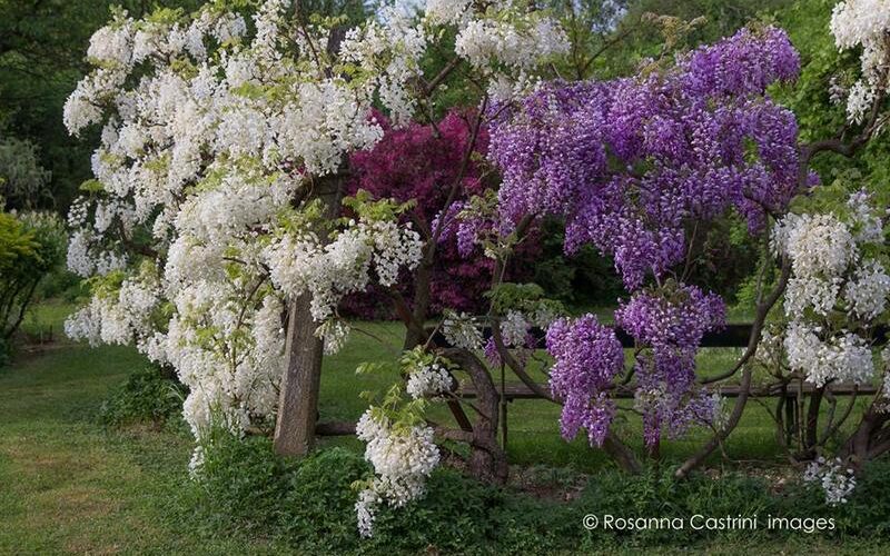 Wisteria frutescens ‘Amethyst Falls’ en un jardín de Piamonte